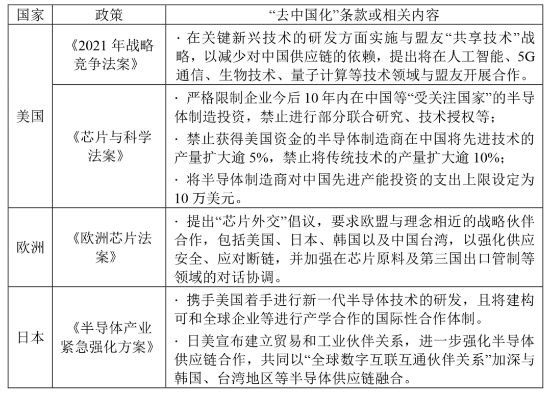 表1:美歐日等國家和地區的半導體法案中“去中國化”條款