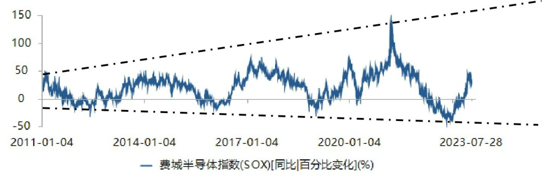 圖3 近10年來費城半導體指數同比變化