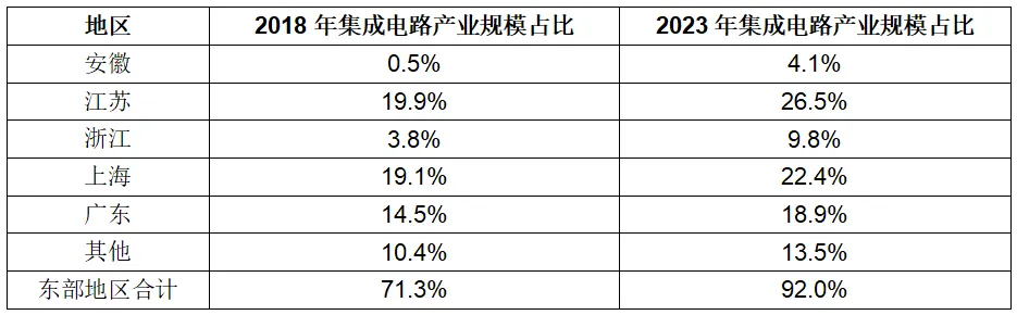 表1 2018-2023年我國(guó)東部地區(qū)集成電路產(chǎn)業(yè)規(guī)模占全國(guó)比重