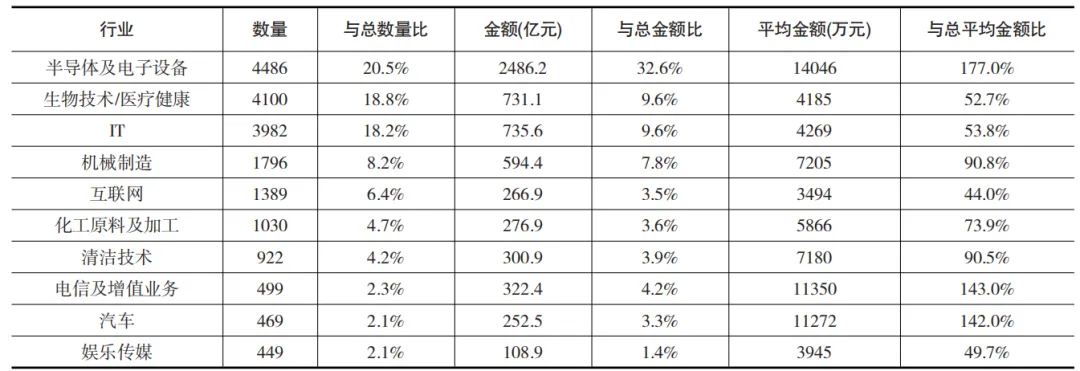 從發(fā)展動(dòng)力來(lái)看,區(qū)域集成電路產(chǎn)業(yè)發(fā)展增速由政策驅(qū)動(dòng)轉(zhuǎn)變?yōu)橛烧龑?dǎo)基金等資本驅(qū)動(dòng)。長(zhǎng)期以來(lái)我國(guó)集成電路產(chǎn)業(yè)已經(jīng)形成了以國(guó)家層面政策、地方政府政策雙向驅(qū)動(dòng)的發(fā)展形式,為集成電路產(chǎn)業(yè)發(fā)展提供充足的動(dòng)力。而隨著2014年國(guó)家集成電路產(chǎn)業(yè)投資基金的設(shè)立,以及2019年科創(chuàng)板設(shè)立與注冊(cè)制試點(diǎn)的推動(dòng),近年來(lái)區(qū)域集成電路產(chǎn)業(yè)的發(fā)展已經(jīng)逐步從由政策驅(qū)動(dòng)轉(zhuǎn)變?yōu)橛少Y本驅(qū)動(dòng)。而地方政府引導(dǎo)基金作為滿足區(qū)域經(jīng)濟(jì)發(fā)展需求,帶有特定政策目標(biāo)的資本工具,更是成為地方政府支持區(qū)域集成電路產(chǎn)業(yè)等實(shí)體經(jīng)濟(jì)發(fā)展的主要抓手。根據(jù)清科研究中心數(shù)據(jù)(表2)顯示,政府引導(dǎo)基金投資半導(dǎo)體行業(yè)的金額占其比重近1/3,位列所有行業(yè)之首。各地方通過(guò)設(shè)立政府引導(dǎo)基金,對(duì)參股的子基金進(jìn)行返投約束,或者通過(guò)直接投資的方式參股項(xiàng)目,要求引導(dǎo)所投項(xiàng)目落地,都加速了區(qū)域集成電路產(chǎn)業(yè)的集聚和發(fā)展。另外,根據(jù)清科研究中心數(shù)據(jù),我國(guó)基金規(guī)模前50強(qiáng)的政府引導(dǎo)基金主要集中于東中部地區(qū),東部尤其以長(zhǎng)三角、粵港澳大灣區(qū)占比最多,整體規(guī)模占政府引導(dǎo)基金總規(guī)模的50%,對(duì)近年來(lái)長(zhǎng)三角、粵港澳大灣區(qū)集成電路產(chǎn)業(yè)的快速發(fā)展起到了關(guān)鍵助力。