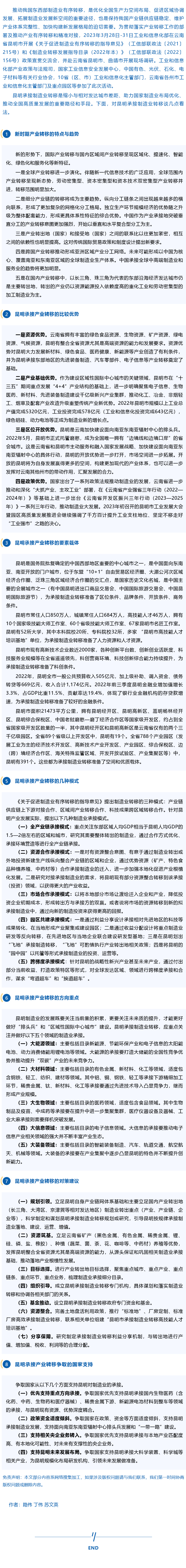 昆明承接制造業轉移的幾點思考