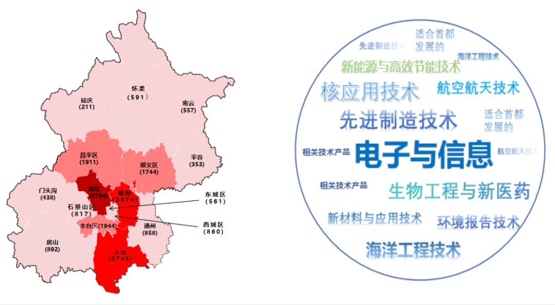 圖1 北京各區(qū)高新技術(shù)企業(yè)數(shù)量以及產(chǎn)業(yè)領(lǐng)域分布