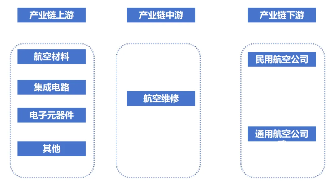一、航空維修處于航空產業鏈中游,涉及產品類別眾多,產業關聯效應突出