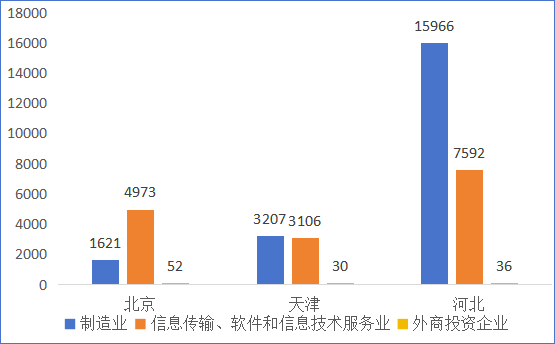 根據天眼查數據,一季度,京津冀三地制造業新設企業20794家,信息傳輸、軟件和信息技術服務業新設企業15671家,總計36465家,較上年同期增長90.2%。新設制造業企業中,醫藥制造業325家,汽車制造業645家,計算機、通信和其他電子設備制造業870家,專用設備等裝備制造業4003家。在招引外商投資企業方面,京津冀三地新設立外商投資企業669家,其中制造業53家,信息傳輸、軟件和信息技術服務業65家,分別較上年同期增長60.6%和58.5%。