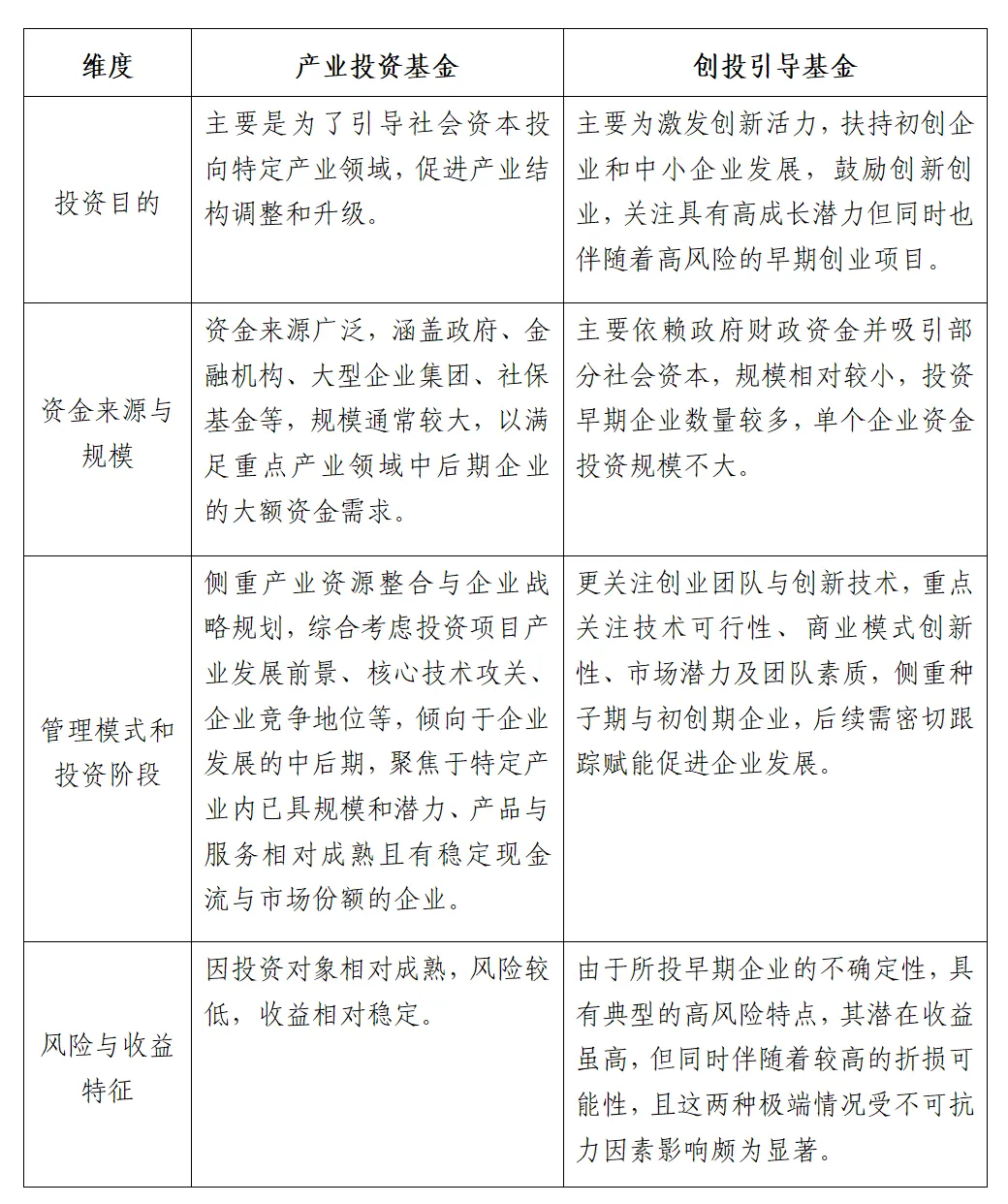 表1 產(chǎn)業(yè)投資基金和創(chuàng)投引導(dǎo)基金主要差異對比