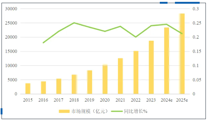 圖3 2015-2025年中國(guó)商業(yè)航天市場(chǎng)規(guī)模及增長(zhǎng)率