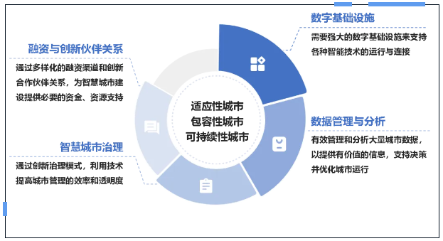 國際上,智慧城市建設(shè)主要關(guān)注包容性、可持續(xù)性與適應(yīng)性三個方面,強調(diào)智慧城市建設(shè)對于提高社會包容性、促進城市可持續(xù)發(fā)展以及提高城市韌性、快速應(yīng)對挑戰(zhàn)的重要性。影響智慧城市建設(shè)的關(guān)鍵驅(qū)動因素包括數(shù)字基礎(chǔ)設(shè)施、數(shù)據(jù)管理與分析、融資與創(chuàng)新伙伴關(guān)系及智慧城市治理。