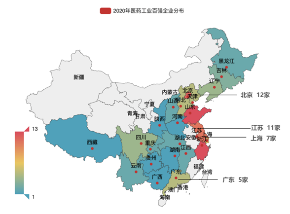 3 2020年中國醫藥工業百強企業分布熱力圖