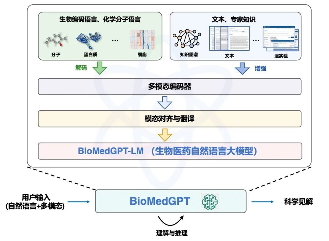 圖6 全球首個開源可商用多模態生物醫藥百億參數大模型BioMedGPT-10B 架構