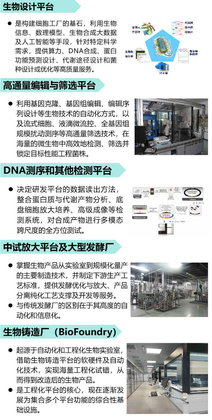 平臺層主要是指通過打造將軟件工程、生化工具、基因工程、自動化平臺、機器學習與數據科學、代碼庫等理論與技術在內的集成化平臺,依賴于DBTL循環迭代,實現生物產品從設計到開發以及最終產品落地的過程。