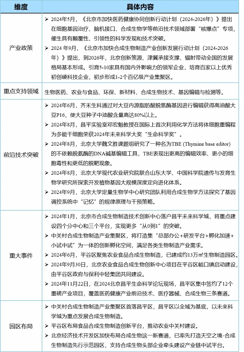 表1 北京市合成生物最新發展態勢