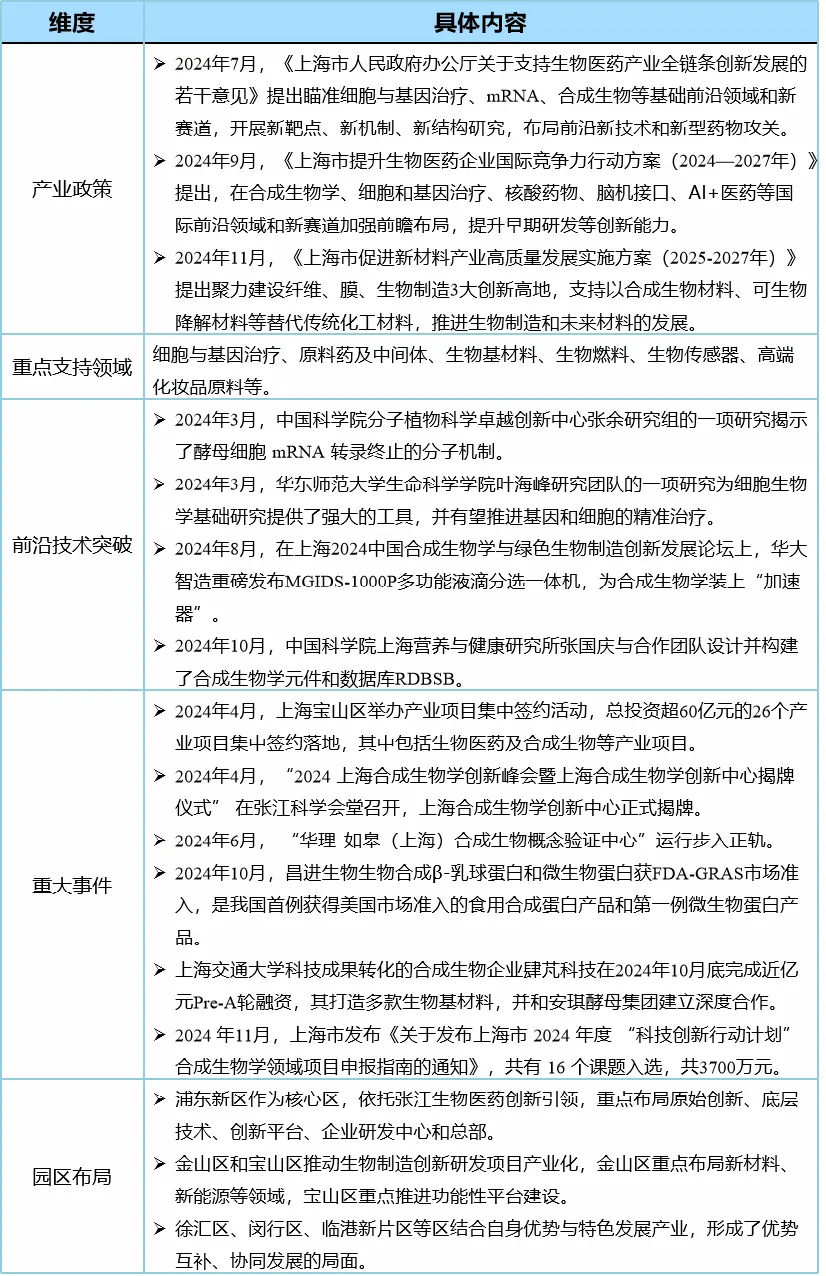 表2 上海市合成生物最新發展態勢