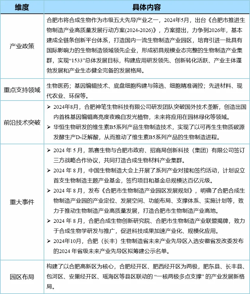 表5 合肥市合成生物最新發展態勢