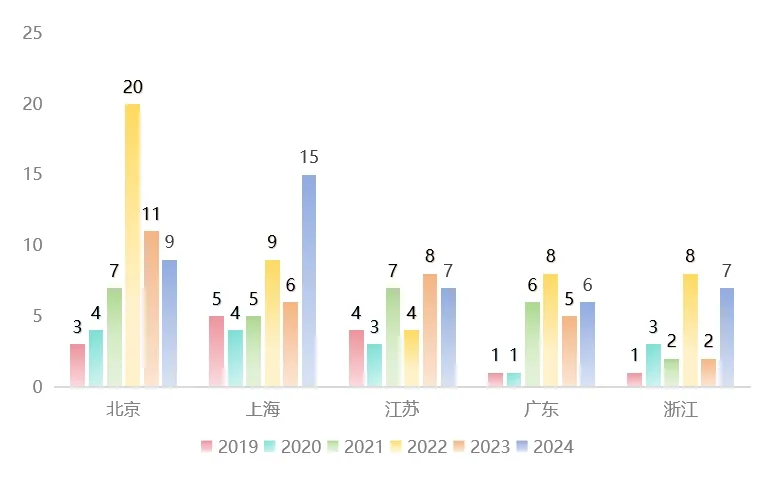 圖4 2019-2024年京滬蘇廣浙創(chuàng)新醫(yī)療器械上市情況