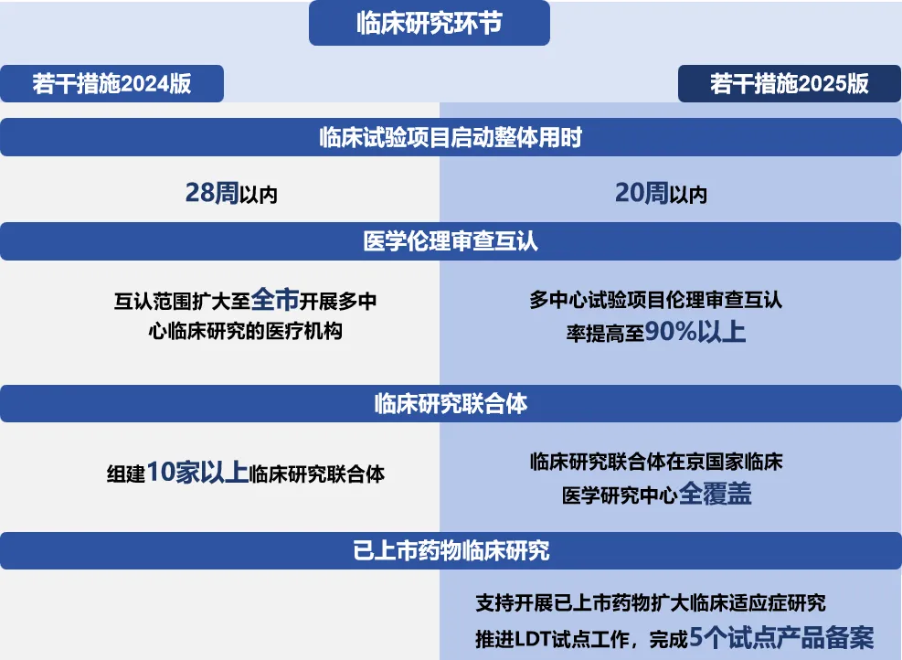 4月7日,北京市醫(yī)保局、市衛(wèi)生健康委等九部門聯(lián)合發(fā)布《北京市支持創(chuàng)新醫(yī)藥高質(zhì)量發(fā)展若干措施(2025年)》(簡(jiǎn)稱《若干措施2025版》),從創(chuàng)新研發(fā)、臨床試驗(yàn)、審評(píng)審批、生產(chǎn)制造、流通貿(mào)易、臨床應(yīng)用等全鏈條提出新一輪32條措施,持續(xù)完善“一條鏈”服務(wù),進(jìn)一步推動(dòng)北京市“萬億”醫(yī)藥健康產(chǎn)業(yè)再上新臺(tái)階。這是北京市醫(yī)保局、市衛(wèi)生健康委等九部門連續(xù)第二年共同出臺(tái)支持創(chuàng)新醫(yī)藥高質(zhì)量發(fā)展的專項(xiàng)政策,2024年4月17日發(fā)布的《北京市支持創(chuàng)新醫(yī)藥高質(zhì)量發(fā)展若干措施(2024年)》(簡(jiǎn)稱《若干措施》)實(shí)施成效顯著。本文對(duì)兩版政策進(jìn)行對(duì)比,結(jié)合北京支持創(chuàng)新醫(yī)藥發(fā)展的實(shí)際成效,梳理《若干措施2025版》的政策亮點(diǎn)。