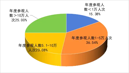 年參觀客流兩極分化顯著。近四成的區屬博物館年觀眾為1萬—5萬人次,具備一定公眾吸引力和基礎服務能力。另有25%的區屬博物館觀眾超10萬人次,居庸關長城博物館、圓明園博物館、明十三陵博物館等更是成為“百萬級”流量擔當,憑借鮮明的考古遺址與歷史文化特色,展現出強大的公眾號召力與運營競爭力。然而,與之形成對比的是,仍有超15%的博物館年觀眾不足1萬人次,在公眾認知、內容策劃或傳播推廣方面仍面臨挑戰,是未來激活整體潛能的關鍵所在。